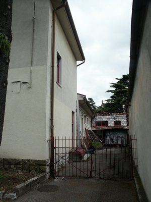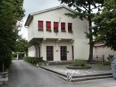 L'immobile sorge all'interno dell'abitato di Opicina, conosciuto fin dalle sue antiche origini come villaggio di campagna, di cui oggi rimane traccia nella denominazione di "Villa". Risale al periodo dell'elezione di Trieste a porto dell'impero asburgico l'avvio di un programma di potenziamento delle vie di comunicazione verso la capitale Vienna; tra le imprese più importanti si segnala l'apertura della "Strada Commerciale", completata nel 1780, cui si deve lo sviluppo del borgo, a partire dalla stazione di posta eretta nel punto in cui la via incontrava "Strada per l'Italia", oggi via di Prosecco. A contribuire all'urbanizzazione del borgo di Opicina tra Otto e Novecento, intervengono sia l'aumento del traffico commerciale, favorendo l'affermazione dell'asse viario quale punto strategico di comunicazione, sia l'apertura del collegamento tranviario con la città, inaugurato nel 1902. Nella prima metà del XIX secolo, infatti, sono in particolare i terreni prospicienti la via principale ad essere protagonisti di un intenso sviluppo edilizio, caratterizzato dalla costruzione di numerose ville di campagna. Con l'urbanizzazione novecentesca, l'amministrazione comunale risponde alle nuove esigenze della cittadinanza di Opicina, che quindi viene dotata di nuove strutture destinate a varie attività, come scuole e luoghi per servizi. In tale contesto si inserisce la realizzazione ad esempio del nuovo macello e dei bagni pubblici. Questi ultimi, oggetto della presente relazione, si trovano su Via degli Alpini, aperta con delibera del 1929. Presso l'Ufficio Tecnico del Comune si conserva il progetto di costruzione elaborato dai funzionari dell'ente nel maggio del 1954; il disegno descrive una semplice struttura con planimetria ad "L", disposta su due livelli. Il pianoterra prevede ai lati del lungo corridoio centrale la disposizione di una serie di ambienti destinati ai servizi, mentre al primo piano, sviluppato sul lato breve del fabbricato, trovano posto solo cinque stanze. A testimoniare l'inaugurazione della nuova struttura, avvenuta il 23 giugno del 1954, rimangono alcuni negativi custoditi presso la fototeca dei Civici Musei di Storia ed Arte di Trieste. Attualmente la struttura, dopo la chiusura dei bagni pubblici, è utilizzata dai servizi sportivi di Opicina e dai volontari dei Vigili del Fuoco.