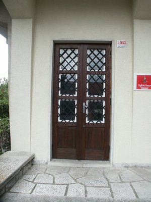 I primi due corpi di fabbrica presentano finiture esterne molto semplici, con un modesto basamento in conci di pietra calcarea a spacco di cava posti in corsi regolari orizzontali e intonaco liscio per tutta l'altezza di facciata e lo sporto della linda. Gronde e pluviali in lamiera zincata raccolgono le acque meteoriche che scendono dalla copertura in coppi curvi rossi "uso Trieste". I serramenti di porta vetrati al piano terra si presentano in legno verniciato naturale, con specchiature vetrate protette da inferriate metalliche a decorazione geometrica. I serramenti di finestra sono in legno verniciati colore rosso con avvolgibili lignei e cornici squadrate in lastre di pietra di Aurisina. Il terzo corpo di fabbrica presenta un rivestimento in conci squadrati di pietra calcarea a spacco di cava, con tre grandi aperture archivoltate con specchiature in vetro-cemento. Internamente l'atrio al piano terra è rifinito con lastre di marmo travertino alle pareti e verde alpi al pavimento; i restanti vani presentano varie tipologie di pavimentazioni in piastrelle o legno di poco pregio. Il piazzale antistante l'ingresso è pavimentato in lastre di pietra locale posate alla palladiana, con aiuola circolare centrale.
