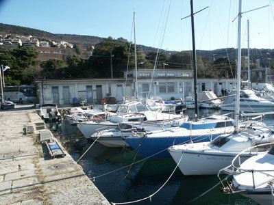 Risale al 1150 il primo statuto per la regolamentazione della vendita del pesce all'interno del territorio di Trieste; a primeggiare nell'attività di pesca fino a tutto il Medioevo fu la corporazione di Muggia, cui si affiancarono, a partire dal Seicento, i pescatori del bacino di Barcola. È proprio la zona prospiciente il mare, tra la città e il castello di Miramare, ad essere interessata da un rapido sviluppo urbanistico nel corso dell'Ottocento; in risposta all'incremento del traffico marittimo e dell'attività di pesca si decise la costruzione di un primo mandracchio nella adiacenze della chiesa di San Bartolomeo, seguita nel 1847 dalla realizzazione di un nuovo bacino ad uso di porto. All'interramento di questo spazio, si accompagnò la creazione di una nuova struttura portuale più esterna, quindi accessibile alle imbarcazioni più grandi. Dal 1885, data di erezione del porticciolo Cedas, prese avvio il progetto di sistemazione dell'area lungo l'asse di collegamento verso Miramare, in fase di allargamento; tra i vari interventi, si segnala il prolungamento dello "squeretto" di Barcola, completato entro la fine del secolo. Importanti lavori di urbanizzazione interessarono l'intera area nel corso della prima metà del Novecento, come testimonia anche la costruzione nel 1951 del celebrato Albergo Americano. In tale contesto si colloca l'impresa in esame. Il progetto per "l'ampliamento del mercato del pesce" di Barcola descrive, nella variante del dicembre 1953, una struttura ad un solo piano, la cui planimetria si articola in diversi piccoli ambienti di servizio, attorno all'area centrale più grande destinata all'attività primaria di vendita del pesce. Il documento originale reca la firma del disegnatore Valentino Leghissa, per il Comune di Trieste. Posteriore di qualche anno alla costruzione dello stabile in oggetto, è l'intervento di interramento dello spazio limitrofo in direzione Miramare, ora occupato da giardini e strutture di servizio.