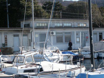 L'edificio monopiano si colloca ai margini dell'interramento di barcola-bovedo e si affaccia direttamente sul porticciolo. La pianta rettangolare allungata espone i lati maggiori a sud-ovest allo specchio acqueo ad a nord est sulla Via Almerigo Grilz e quindi sul giardino retrostante. La struttura in cemento armato presenta una copertura piana con un sopralzo centrale, che permette una migliore illuminazione del vano corrispondente alla sede di un circolo privato. I rimanenti spazi sono suddivisi in piccoli magazzini utilizzati per il deposito delle attrezzature da lavoro dei pescatori.