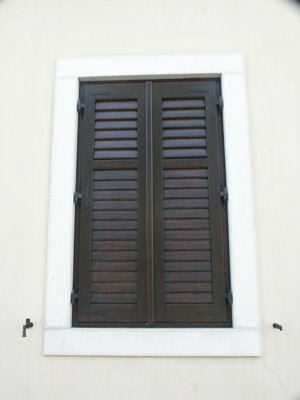 Il fabbricato presenta un basamento in pietra artificiale posto a correre lungo tutto il perimetro; le restanti parti delle facciate sono intonacate lisce in color giallo chiaro. Fori architettonici rettangolari sono incorniciati da elementi in pietra bianca bocciardata. I serramenti vetrati sono realizzati in alluminio color testa di moro con oscurante esterno a doppia anta a lamelle orientabili. La linda in calcestruzzo armato faccia vista supporta gronde e pluviali in lamiera verniciata color testa di moro, che raccolgono le acque meteoriche dal manto in coppi curvi rossi "uso Trieste". Sul lato postico un porticato in struttura intelaiata in calcestruzzo armato e copertura a falda unica in coppi curvi rossi protegge l'ingresso agli spogliatoi posizionati al piano terra.