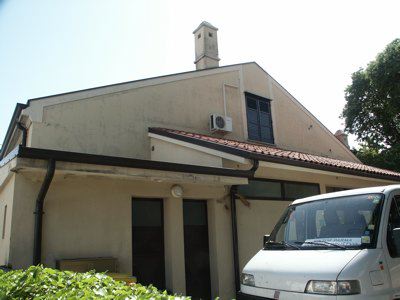 Il fabbricato a pianta quadrangolare con cortile di pertinenza si colloca al centro dell'abitato di Trebiciano e prospetta sulla Strada Provinciale Opicina-Basovizza. Completamente estraneo al contesto urbanizzato circostante per tipologia, dimensioni e materiali, il fabbricato che ospita la sede di un oratorio presenta un livello fuori terra più un sottotetto ed è realizzato sulla base di una struttura in calcestruzzo armato. La copertura a due falde accentua con il grande timpano del prospetto principale la simmetria della composizione.