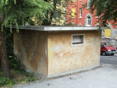 Il piccolo fabbricato ospitante un tempo una pescheria ed oggi inutilizzato, è posto lungo il lato destro della Via Biasoletto, all'interno della fascia verde che separa il marciapiede dalle aree private degli edifici residenziali del rione di Chiadino. L'edificio si presenta come un piccolo manufatto monopiano a pianta rettangolare e copertura piana con struttura in muratura portante di laterizio e soletta di copertura in calcestruzzo armato.