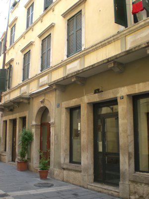 L'edificio sorge all'interno della zona più antica di Trieste, Cittavecchia, modificata negli anni Trenta del Novecento da pesanti interventi avviati con il progetto di sistemazione del colle di San Giusto. Tra gli immobili risparmiati dalle demolizioni rientra l'edificio con affaccio su Via del Ponte, occupato al piano terra da un locale commerciale e ai piani superiori da abitazioni. In linea con l'antica tipologia architettonica del borgo, la struttura presenta fori finestra e bassi portali ad arco arricchiti da cornici lineari in pietra bianca d'Aurisina e capitelli. Il portale centrale si caratterizza per la presenza di piedritti a piani lisci con dadi d'imposta sporgenti e capitelli modanati; ai lati si aprono tre fori arricchiti da cornici in pietra bianca. Al 1872 risale un primo progetto di modifica sull'immobile che prevedeva l'aggiunta di un quarto piano, come testimonia la presenza in facciata di una cornice marcapiano in pietra. Un successivo piano di recupero interessò, tra il 1984 ed il 1985, l'intero isolato, sottoposto al "Piano di Recupero" con L 457 del 1978; gli interventi realizzati sull'edificio a firma dell'architetto Franco Stagni, sono stati indirizzati, in particolare, al restauro degli elementi architettonici esterni e alla ricostruzione delle chiostrine interne preesistenti, mantenendo la scala a chiocciola nella posizione originaria.