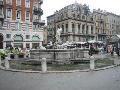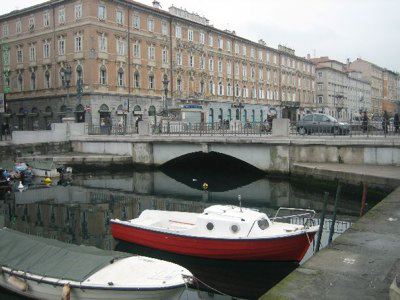 La zona delle antiche saline, a ponente delle mura della città medievale, demolite, per volere dell'imperatrice Maria Teresa d'Austria nel 1749, cominciò ad essere bonificata già a partire dagli inizi del XVIII secolo. Il progetto del suo totale interramento si concretizzò a metà del 1700, allorquando la sovrana cedette al Comune di Trieste i fondi su cui erigere la futura città che, in suo onore, fu chiamata "Teresiana". Il vasto terreno paludoso, nel suo tratto prospiciente il mare, era attraversato all'epoca da tre canali di diversa ampiezza: uno, detto del Vino o Piccolo, lungo un centinaio di metri ed interrato per motivi igienici nel 1816, si inoltrava dentro Piazza della Borsa spingendosi fino al cuore di Piazza Vecchia attraverso l'odierna Portizza. Uno medio, corrispondente, all'incirca, all'attuale canale che dalla chiesa di S. Antonio Nuovo conduceva fino al mare e che accoglieva le acque di due torrenti ed infine un terzo, più corto degli altri due. Tutti e tre questi canali erano accessibili alla navigazione di piccolo cabotaggio a servizio delle saline. Allorquando si stabilì di bonificare l'area, per permettere alla città di espandersi territorialmente in virtù della sua crescita demografica, si prese in considerazione il progetto di interrare il più piccolo allargando invece il medio, rendendolo agibile a bastimenti di stazza maggiore e conservando pure quello del Vino per imbarcazioni minori. Per ordine di Maria Teresa, il 14 ottobre 1756, il Canal Grande, l'unico, di fatto, rimasto, venne ampliato e dotato di sponde murate sotto la direzione dell'arch. Matteo Pirona al costo di 90.000 fiorini. Inizialmente lungo le sponde furono piantati degli alberi, successivamente tolti per probabili motivi di ordine pratico, intralciando, con la loro presenza, le operazioni di ormeggio nonché quelle di carico e scarico delle navi. Largo 28,4 metri, il corso d'acqua era attraversato da due ponti di ferro mobili: il cosiddetto Ponte Verde, all'imboccatura del canale, posizionato nel 1858 e il più noto Ponte Rosso, che metteva in comunicazione l'omonima piazza con l'allora Via delle Poste, collocato nel 1831 ed eseguito nelle officine dei fratelli Strudthoff in sostituzione di uno di legno di colore rosso appunto. L'enorme quantità di terra ricavata dall'ampliamento del canale servì invece da basamento per un terrapieno utilizzato per piccoli scambi commerciali in prossimità del ponte. Fu proprio quel terrapieno a trasformarsi nella futura Piazza del Ponte Rosso. Lo spazio fu regolarizzato e concepito nelle sue forme architettoniche da Gianantonio Tognana già nel 1776, derivando il suo appellativo proprio dal colore del ponte che costituiva il passaggio obbligato tra la città vecchia e quella nuova. La sua posizione strategica, prospiciente il punto di approdo delle navi e al crocevia di importanti vie di comunicazione, rese la piazza uno dei punti di incontro più dinamici dal punto di vista commerciale e mercantile, divenendo ben presto sede di un vivace mercato ortofrutticolo. Piazza del Ponterosso fu, sin dalla sua iniziale creazione, un'ampia piazza quadrangolare circondata da numerosi edifici di gran pregio architettonico, le cui prime registrazioni tavolari risalgono al 1789. Tagliata a metà dall'odierna Via Roma, lo spazio presenta sul lato a settentrione una fontana a tre bocche rappresentante una rupe sul cui vertice poggia un genio fluviatile. L'opera risale al 1751 su progetto dello scultore Francesco Mazzoleni, creatore della fontana dei Quattro Continenti di Piazza Unità d'Italia. Familiarmente nota come fontana del "Giovanin", in onore del puttino che la sormonta, la fontana attingeva l'acqua direttamente dall'acquedotto teresiano fatto costruire dall'imperatrice a metà del 1700 incanalando le acque provenienti dalle alture di S. Giovanni. Ingentilivano la piazza, non solo la fontana del Puttino, ma anche un chiosco in muratura e ferro destinato ad ospitare un corpo di guardia ed alcuni gabinetti pubblici in ghisa decorata. La regolazione della contrada del Canal Grande risale al 1821, allorquando l'Ufficio delle Civiche Fabbriche approvò il progetto di lastricazione dell'area. La pavimentazione, in grossi blocchi di masegno, venne disposta a spina di pesce nella zona centrale, a correre lungo il sedime delle strade. La struttura della piazza rimase invariata nella sua sostanza fino alla metà del XX secolo. Durante lo stravolgimento della viabilità stradale negli anni '50, l'antico lastricato venne, infatti, ricoperto con un manto di asfalto. Si colse allora l'occasione per interrare i servizi igienici. Sulla piazza fanno bella mostra di sé alcuni tra i più eleganti edifici triestini come, ad esempio, la monumentale sede della Banca Nazionale del Lavoro, insediatasi dal 1928 nell'edificio costruito per il commerciante Alessandro Genel nel 1873. Oppure gli edifici posti agli angoli con Via Roma: al numero civico 3, il palazzo opera di A. Bacicchi, risalente al 1882; al numero civico 4, il fabbricato noto con il nome di casa Allodi con la sua originale torretta ottagonale risalente al 1913, progettato dall'arch. O. Sonetti e che ospitò, durante gli anni Trenta, l'Hotel Centrale.