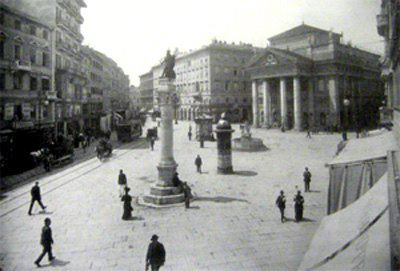 Piazza della Borsa, cuore nevralgico di una città che cominciò a sviluppare il suo tessuto urbano a partire dalla metà del XVIII secolo, si presenta come il risultato di differenti impianti urbanistici risalenti ad epoche diverse. Lo spazio si definì, nella sua attuale forma architettonica, allorquando l'imperatrice d'Austria, Maria Teresa, diede un nuovo impulso alle costruzioni interrando, nel 1749, le saline ad ovest delle antiche mura tergestine. Estendendo i benefici del Punto Franco a tutto l'Emporio, Maria Teresa, contribuì notevolmente allo sviluppo sociale ed economico della città, producendo dei vantaggi grandissimi: incremento che, pur subendo un drastico arresto durante la dominazione francese, riprese, seppur a fatica, dopo la Restaurazione, con il ritorno del dominio asburgico. Diretta conseguenza di questo slancio economico fu, quindi, l'aumento della popolazione, che, verso la metà del XIX secolo, segnalava la presenza di ben 80.000 unità. Trieste allora subì una radicale trasformazione del suo tessuto urbano, modernizzandosi nell'aspetto e nei contenuti: la città, assetata di nuovi spazi, andò presto a ricoprire con edifici, vie e piazze, i terreni paludosi strappati con fatica alla forza del mare. La bonifica e il prosciugamento delle antiche saline, già cominciata all'inizio del secolo, si concretizzò pienamente solo nel 1749, allorquando fu emanata un'Istruzione Imperiale con la quale si regolamentava l'urbanizzazione del nuovo Borgo, chiamato, appunto, delle Saline. Tale Borgo venne concesso al Comune nel 1750 dietro la rinuncia al credito di 20.000 fiorini prestati nel 1745 all'Erario e dietro la cessione di alcuni dazi, tra i quali quello del pesce, del nocchiero, dell'ancoraggio e del quarantesimo sull'olio, in grado di fruttare circa 5.000 fiorini di rendita l'anno, per far fronte alle spese delle giurisdizioni civili, politiche e penali che avrebbero gravato d'ora in avanti sull'Erario, come diretta conseguenza della creazione della nuova città. La dirigenza dei lavori d'interramento, che si auspicavano rapidi e veloci, sarebbe stata affidata all'ing. Francesco Saverio Bonomo e così, come ci ricorda il Trampus: "L'opera, che diede l'impulso decisivo all'erezione del nuovo borgo, fu la realizzazione del Canal Grande ottenuto ampliando il vecchio canale collettore delle saline, avvenuta tra il 1754 e il 1756 ad opera dell'impresario Mattio Pirona. L'abitato cominciò ad estendersi progressivamente sulle nuove aree in direzione Nord-Nord Est, da Corso Italia verso Via Ghega". Abbattute, per volere della sovrana, le antiche mura medievali, la città cominciò rapidamente ad espandersi verso ponente assumendo il nome di città Teresiana. Edoardo Marini così ci ricorda: "La piazza del terreno della Contrada di Porta Nuova, chiamata anche Piazza della Portizza, cominciò a delinearsi con il suo caratteristico tracciato triangolare, quando nuove case si allinearono sulla Via delle Beccherie, sul posto delle vecchie mura demolite, dalla Porta di Vienna, atterrata nel 1780 (oggi capo di Piazza) al Largo Riborgo, tra l'edificio della vecchia Dogana (posto dell'odierno Tergesteo) e gli edifici marginali del Borgo Teresiano lasciando aperto un tratto del Canal Piccolo". L'irregolare spazio, delimitato dalla Piazza Grande, dalle Rive e dal Corso, fu chiamato quindi Piazza della Borsa dal nome del palazzo della Borsa, simbolo dell'intraprendenza commerciale triestina, che lì trovò la sua ideale collocazione. L'antica Piazza della Portizza, era originariamente divisa da un canale lungo un centinaio di metri, chiamato Canal Piccolo o del Vino, il cui tratto, da Porta Riborgo alla Portizza, venne soppresso già nel 1730, cogliendo allora l'occasione non solo d'elevare alte sponde murate nel tratto fino al mare, ma anche di allargarlo. Divenuto malsano, il Comune ne decretò il suo totale interramento nel 1816. Proprio sull'area occupata parzialmente da quel piccolo canale fu edificato, nel 1802, il palazzo della Borsa, su progetto dell'arch. Antonio Molari di Macerata. L'edificio, di netta impronta neoclassica, secondo le mode imperanti allora, si distinse subito per l'elegante facciata a 4 colonne doriche. Le grandi statue del porticato furono aggiunte solo successivamente, nel 1807. Al lato del palazzo della Borsa sorge il Tergesteo, costruito sul fondo dell'antica Dogana (parte della quale era destinata ad ospitare i governatori della città). La vecchia costruzione, risalente al 1754, fu ceduta al conte Antonimo Faraone Cassis per 70.000 fiorini, nel 1785, allorquando gli uffici doganali furono trasferiti nell'omonima piazza. L'intraprendente uomo d'affari demolì l'originaria struttura nel 1840 dando avvio ai lavori di costruzione del Tergesteo. Il nuovo fabbricato, eseguito dall'impresario Valentino Valle, su disegno dell'arch. Antonimo Buttazzoni, divenne ben presto il ritrovo della società azionista triestina. La particolarità e la bellezza dell'edificio consistono nella singolare galleria crociata interna, la cui copertura si componeva, inizialmente, di una struttura di ferro e vetro poi, purtroppo, sostituita. Dal 1844 ospitò la Borsa, la cui sede primitiva, ormai insufficiente ad accogliere le riunioni affaristiche, venne utilizzata come sede della Camera di Commercio e Industria. Altro edificio di pregio, prospettante la propria facciata sulla piazza, è l'elegante fabbricato che ospita la Borsa dal 30 ottobre 1928. Eretto come Restaurant- Birreria della Dreher, è opera degli architetti Bressler e Wittrisc. Ulteriori edifici di valore, non solo artistico, ma anche storico, sono: il numero civico 9, dove iniziò la sua attività il Gabinetto di Minerva (società letteraria scientifica istituita nel 1809 da Domenico Rossetti) e la singolare casa Bartoli, opera dell'arch. Max Fabiani, risalente al 1905. Al centro della piazza c'era originariamente quella fontana del Nettuno, alimentata dall'acqua Teresiana di S. Giovanni, opera del Mazzoleni, sposta