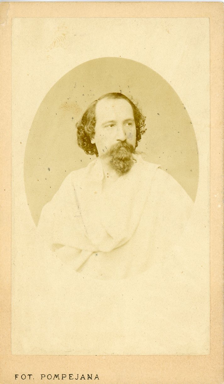 Giuseppe Luzzati della Fotografia Pompeiana avvia l’attività nel 1864 e il suo è il solo stabilimento fotografico che esegue «ritratti di notte colla lampada a luce magnesio e ritratti di grandezza naturale anche a tutta figura», come leggiamo in una pubblicità del Giornale di Napoli del 17 marzo 1865. Inoltre ha una macchina triscopica colla quale può eseguire «tre differenti ritratti della medesima persona, in una sola posa, contenuti in un biglietto da visita». Lo studio fotografico, Fotografia pompejana e sculto-fotografia, attivo a Napoli in via Toledo 205 Palazzo de Sinno, ma anche 329 in Palazzo Nuovo dirimpetto ai Fiorentini. E' attivo anche a Venezia in Piazza San Marco