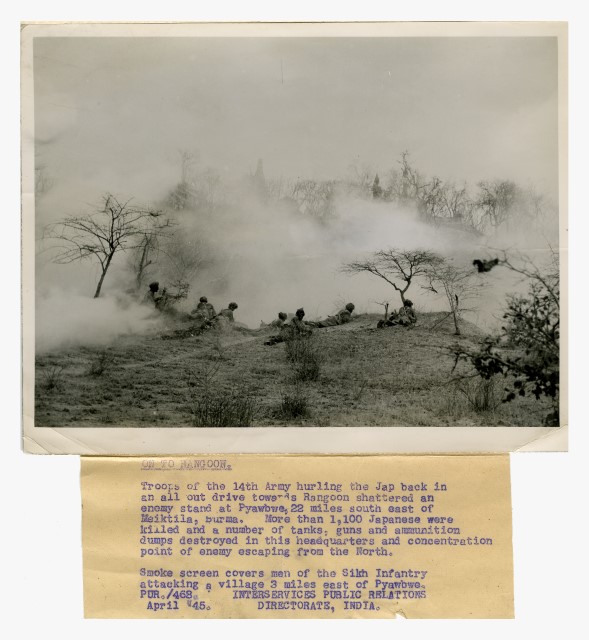 L'Inter Services Public Relations Directorate è un'agenzia propagandistica dell'esercito britannico indiano che ha prodotto molte fotografie durante la Seconda Guerra Mondiale. Le immagini sono apparse in pubblicazioni come il giornale SEAC (South East Asia Command), il Victory Magazine, il Weekly Commentary, l'Indian Information, il Fauji Akhbar. Diverse le pubblicazioni realizzate dall'agenzia con sede Delhi che celebrano il ruolo delll'esercito indiano durante la guerra come "India's fighting men" e "The tiger triumphs: the story of three great divisions in Italy". Dal 1943 al 1947 il poeta N. M. Rashed prestò servizio con il grado di capitano presso l'Inter Services Public Relations Directorate in Iran, Iraq, Egitto, Gerusalemme e Ceylon. Nel fondo USIS sono presenti diversi positivi realizzati dall'agenzia. In alcune fotografie, la didascalia sul retro riporta esplicitamente il divieto di divulgazione in alcuni paesi, tra cui, l'India. Infine, è presente una consistente quantità di ritratti, prodotti dall'organizzazione destinata alla propaganda del Governo Indiano, Interservices public relations directorate, volutamente ripetitivi, neutri, dove il fotografo si priva di sovrastrutture ed effettua delle foto schedativo-meccaniche di sanderiana memoria che documentano i corpi militari indiani e americani. I volti sono seri, impettiti, saltuariamente affiora il sorriso, in particolare, nelle foto che identificano i militari indiani che si sono distinti nel conflitto, guadagnando un riconoscimento, ad esemplificare lo stereotipo hollywoodiano dell'eroe, sempre vincente e sorridente. Come per tutto il fondo USIS, si tratta di una produzione fotografica rigorosamente in bianco e nero, non solo per ragioni di economicità (il colore è più difficile e costoso da sviluppare) ma anche perché la funzione delle foto monocolore è prettamente documentaria e cronachistica.