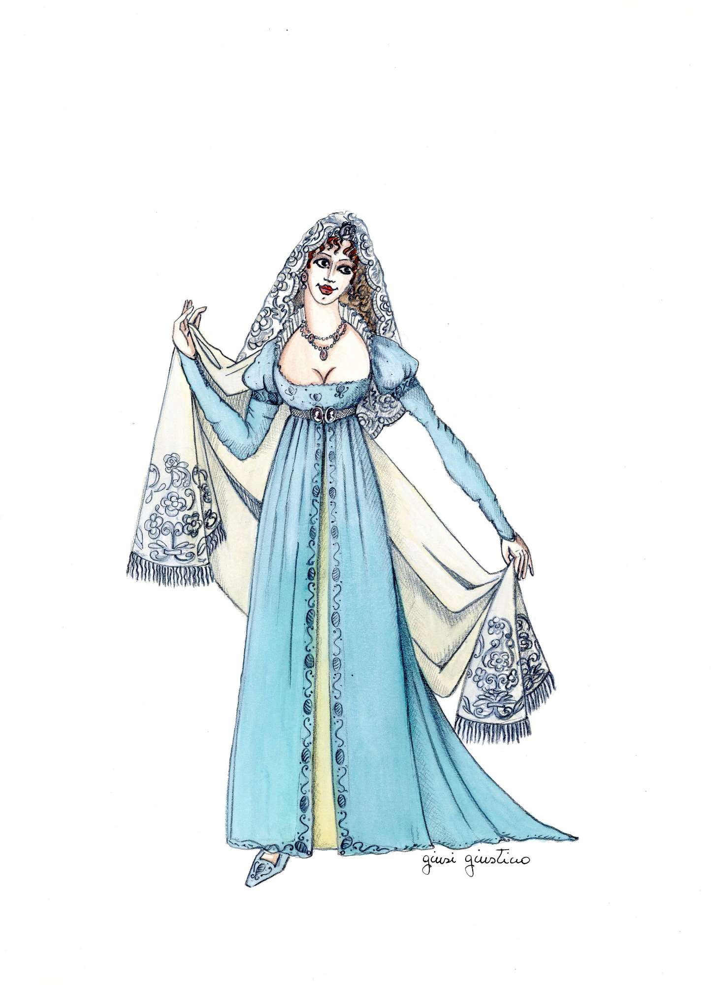 Diplomata all'Accademia di Belle Arti in Scenografia e Costume, dal 1990 Giusi Giustino è costumista e direttore della Sartoria del Teatro di San Carlo dove ha realizzato i costumi per moltissimi costumi come il Faust, Don Carlo, Lucrezia Borgia ecc... Ha lavorato in molti teatri in tutta Italia, come il Verdi di Trieste, La Fenice di Venezia, il Teatro dell'Opera di Roma, il Massimo di Palermo.