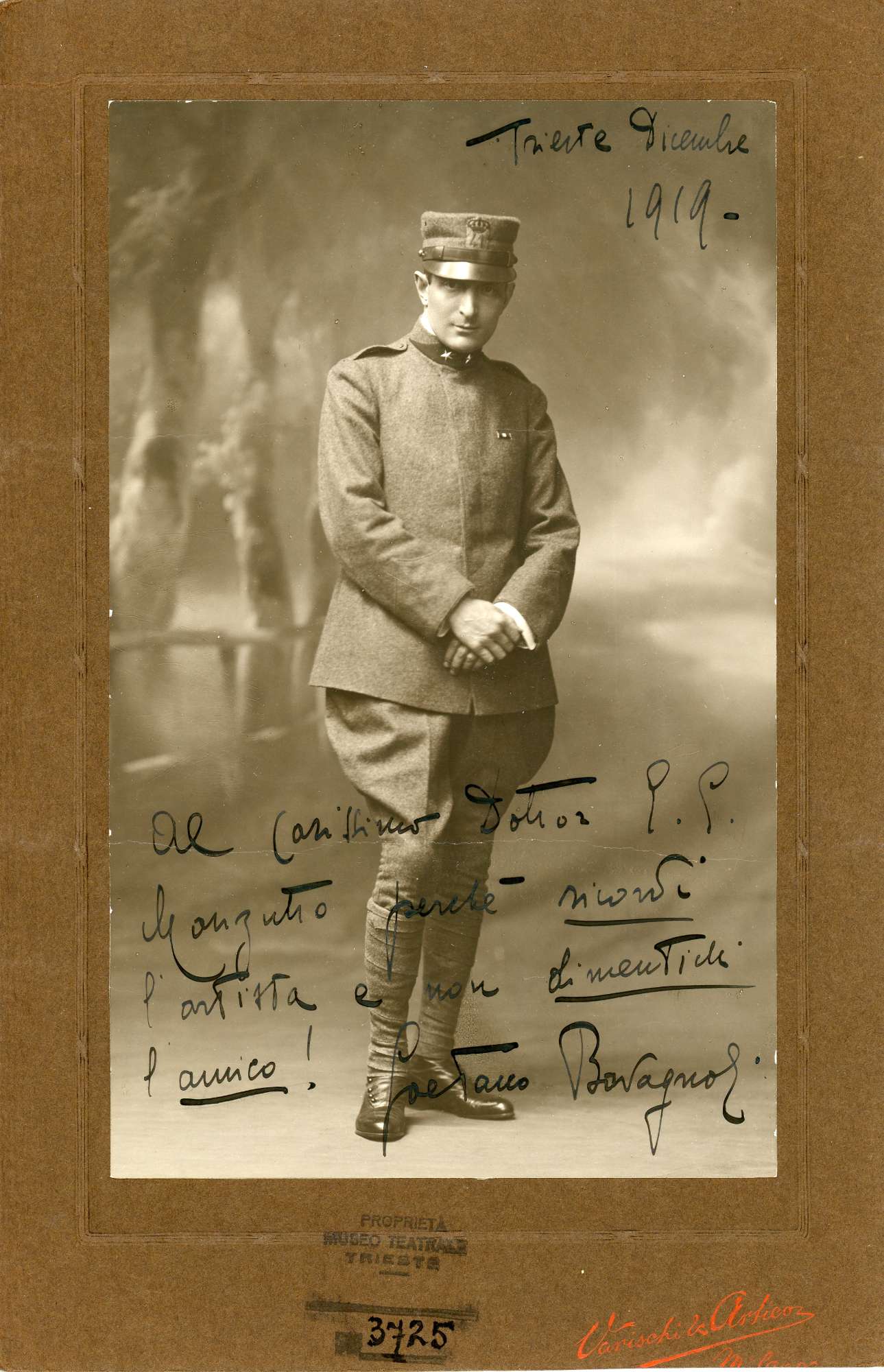 Lo studio ed il laboratorio fotografico "Varischi Artico e C." si costituisce a Milano nel 1900, rilevando l'attivita' dello studio Ricci, uno dei primi fotografi in Milano specializzato sin dal 1850 in dagherrotipi, notevole ritrattista con una ricca clientela fatta di borghesi e aristocratici. Del nuovo studio erano soci: Giovanni Artico, Arturo Varischi e Angelo Pettazzi, stabilito in Corso Vittorio Emanuele n. 110-111, poi Corso Vittorio Emanuele 22. Angelo Pettazzi e' un affermato commerciante, produttore di apparecchi fotografici nella ditta omonima fondata nel 1871, Giovanni Artico e Umberto Varischi invece avevano lavorato entrambi presso lo studio Ricci.