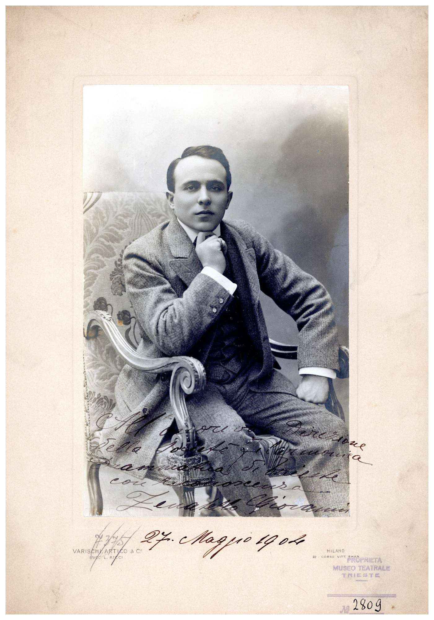 Lo studio ed il laboratorio fotografico "Varischi Artico e C." si costituisce a Milano nel 1900, rilevando l'attivita' dello studio Ricci, uno dei primi fotografi in Milano specializzato sin dal 1850 in dagherrotipi, notevole ritrattista con una ricca clientela fatta di borghesi e aristocratici. Del nuovo studio erano soci: Giovanni Artico, Arturo Varischi e Angelo Pettazzi, stabilito in Corso Vittorio Emanuele n. 110-111, poi Corso Vittorio Emanuele 22. Angelo Pettazzi e' un affermato commerciante, produttore di apparecchi fotografici nella ditta omonima fondata nel 1871, Giovanni Artico e Umberto Varischi invece avevano lavorato entrambi presso lo studio Ricci.