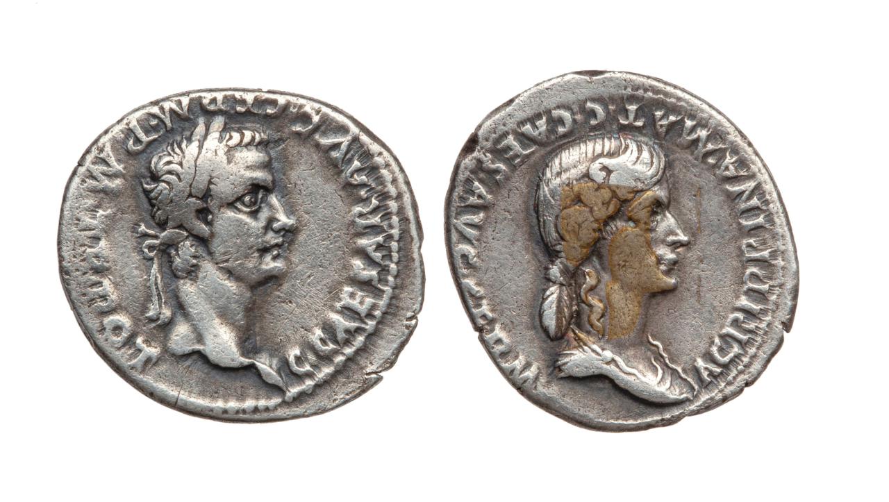 Ritratto di Agrippina, madre di Caligola: il volto di profilo è ritratto verso destra.;