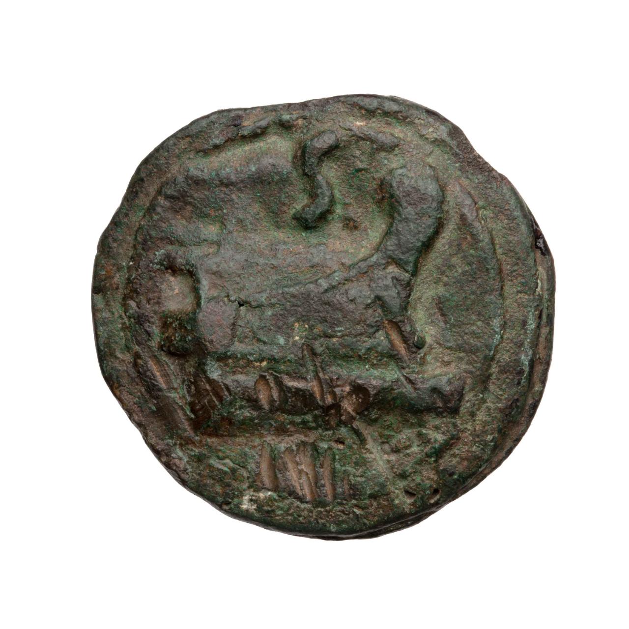 Aes grave, Semisse con testa di Saturno / Prua a destra