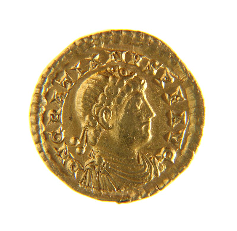 Graziano e Valentiniano assisi; VICTOR IAAVGG, in esergo TROBS