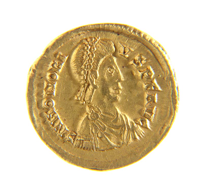 Testa dell'imperatore a destra; DNHONORI USPFAVG