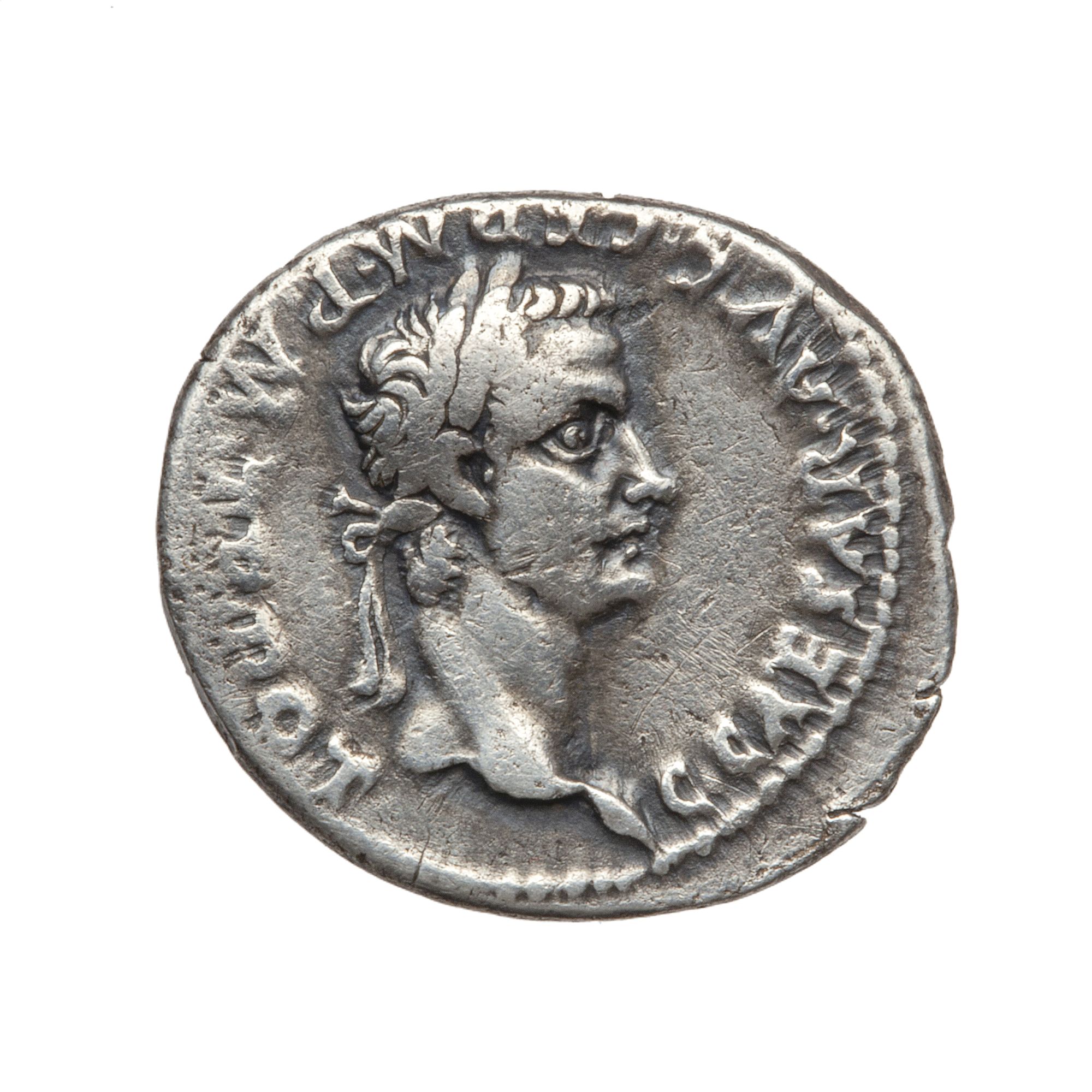 Testa dell’imperatore di profilo, rivolta a destra, con diadema corona sul capo, capelli corti.; in senso antiorario: C CAESAR AUG GERM P M TR POT (Gaio Cesare Augusto Germanico, pontefice massimo, tribuno della plebe)