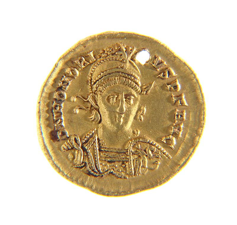 Testa dell'imperatore di fronte; DNHONORI USPFAVG