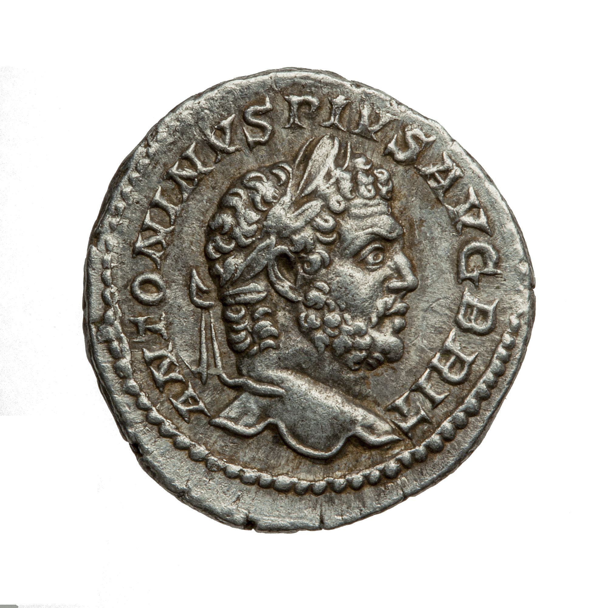 Denario con testa di Caracalla / Personificazione dell'Indulgenza feconda