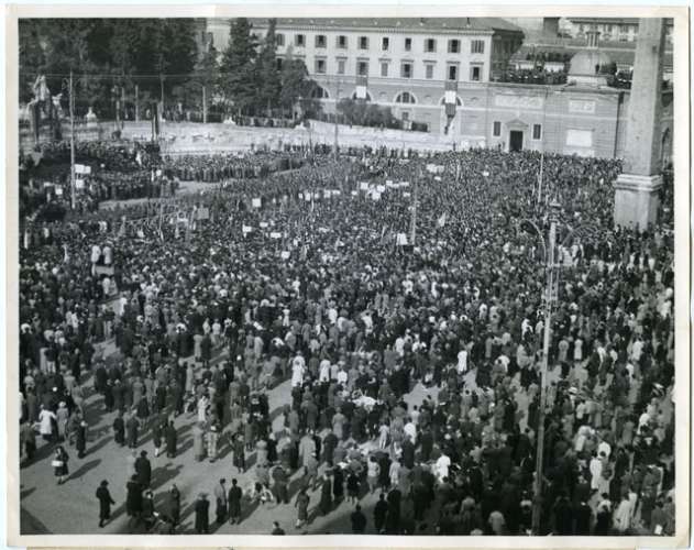 THOUSANDS CROWD THE PIAZZA DEL POPULO IN ROME DURING TEH DEMOSTRATION FOR ITALIAN PATRIOTS