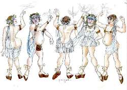 Il candelaio, di Giordano Bruno, regia Tato Russo, figurini di Marta, Lucia e terza figura femminile