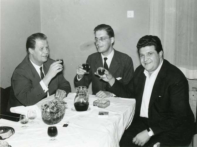 Pavle Merkù con Samo Hubad e la moglie Dana Hubad in occasione della esecuzione di Von der kindesmörderin Marie Farrar