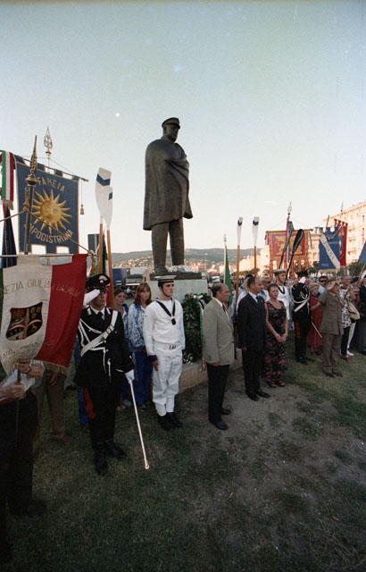 Nazario Sauro cerimonia, marittima, Codarin, marinai, messa, corone, canottieri, Dressi, Menia, De Vidovich. Stazione marittima, esuli istriani, chiesa, Grizon, reduci di guerra. Nazario Sauro, figlia.