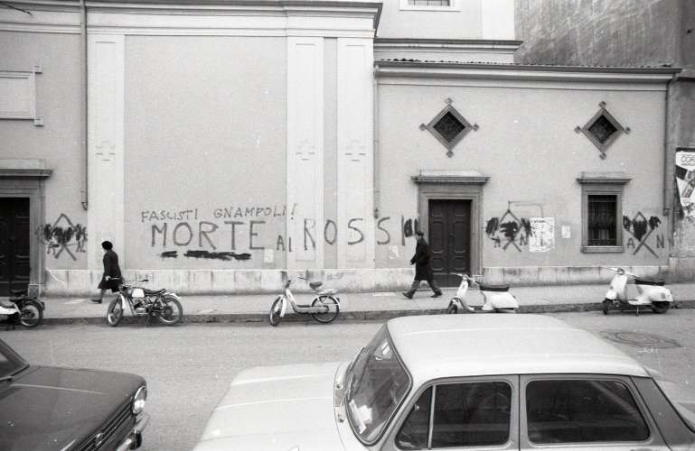 Scritte fasciste all'esterno della chiesa di S. Antonio vecchio