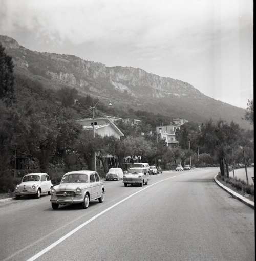 v. Gatteri / segnale divieto svolta a ds. / simboli MSI - PLI - Monarchici