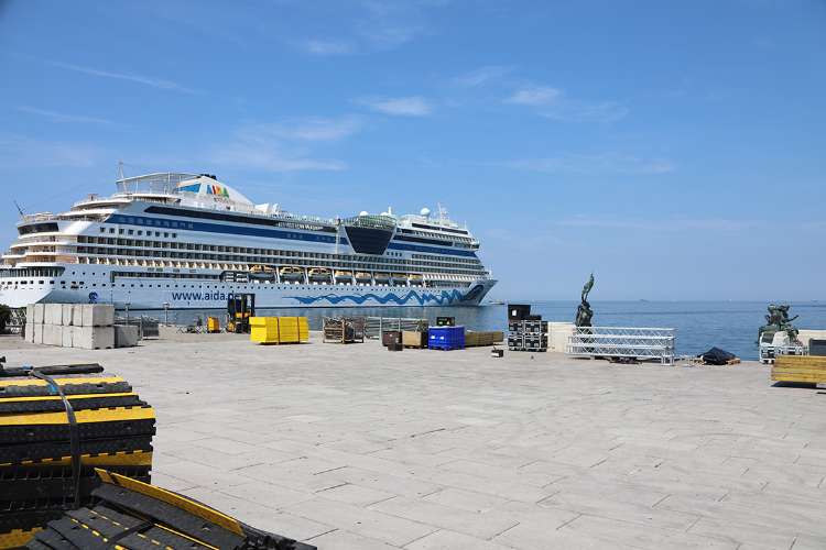 Tramonti a Nord Est Festival nave Palinuro e preparazione del palco