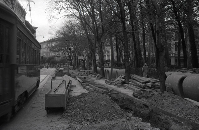 Tabella Lavori in via Giulia; lavori per fondamenta Centro tumori