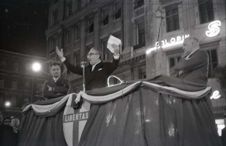 Comizio di Gianni Bartoli (DC) in piazza Goldoni