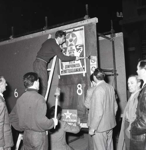 Comizio Carlo Delcroix (Partito Monarchico) in piazza Unità