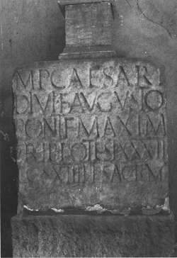 Dedica sacra all'Imperatore Augusto in calcare da San Canziano