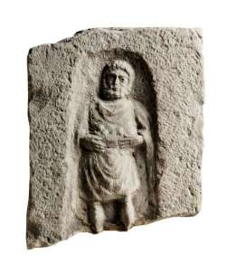 Stele anepigrafe con rilievo di togato in calcare
