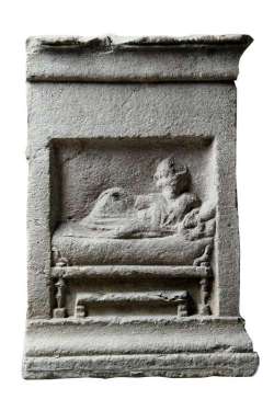 Stele con figura adagiata su kline in marmo da Trieste via Malcanton