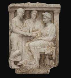 Stele funeraria attica con scena di commiato in marmo collezione Arcadi Sonziaci S.3