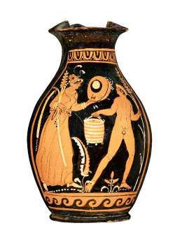 Oinochoe apula a figure rosse con fanciulla in corsa e giovane nudo