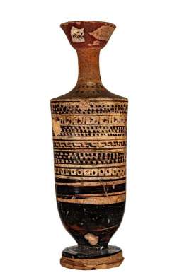 Lekythos a vernice nera sovraddipinta a reticolato