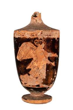 Lekythos attica a figure rosse con donna alata da Corinto