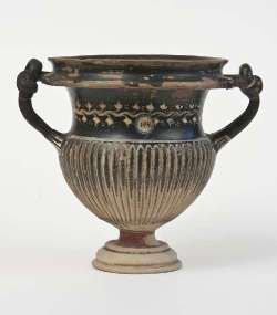 Kantharos strigilato a vernice nera sovraddipinta