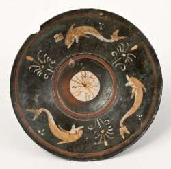 Coppa emisferica con pesci a vernice nera sovraddipinta