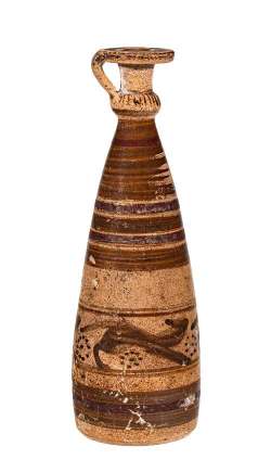 Alabastron conico etrusco-corinzio a fasce con cani in corsa