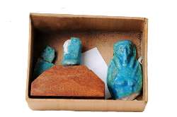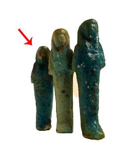 Usciabti in faience, inv. 39250; Statuetta funeraria mummiforme, dall'Egitto