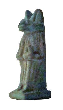 Amuleto in faience raffigurante Bastet con pilastro dorsale, dall'Egitto