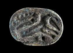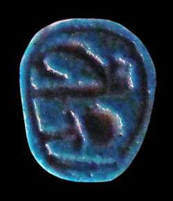 Scaraboide in faience con segni geroglifici, dall'Egitto