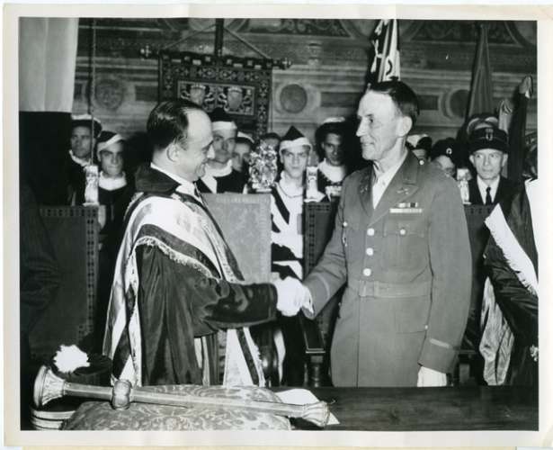 Un sergente del Governo Militare Alleato, direttore d'orchestra nella vita privata intrattiene con l'architetto Secchi direttore dei lavori di ricostruzione.