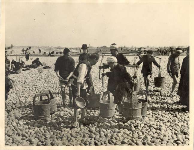 Working with great speed Chinese soldiers mine a section of the Burma Road