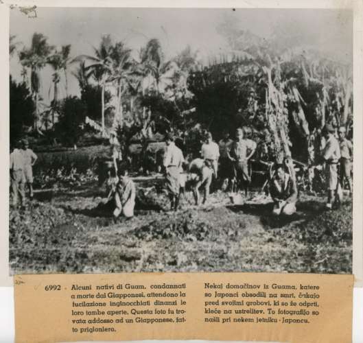 Alcuni nativi di Guam condannati a morte dai Giapponesi attendono fucilazione inginocchiati dinanzi le loro tombe aperte (...)
