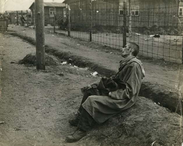 Bodies of German atrocity victims fill a pit at Belsen horror camp