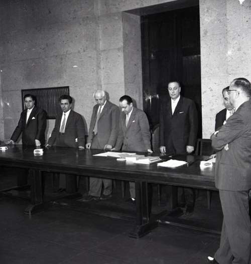 Ministro Carli alla CCIA ; Insegna Mostra Storica RAS